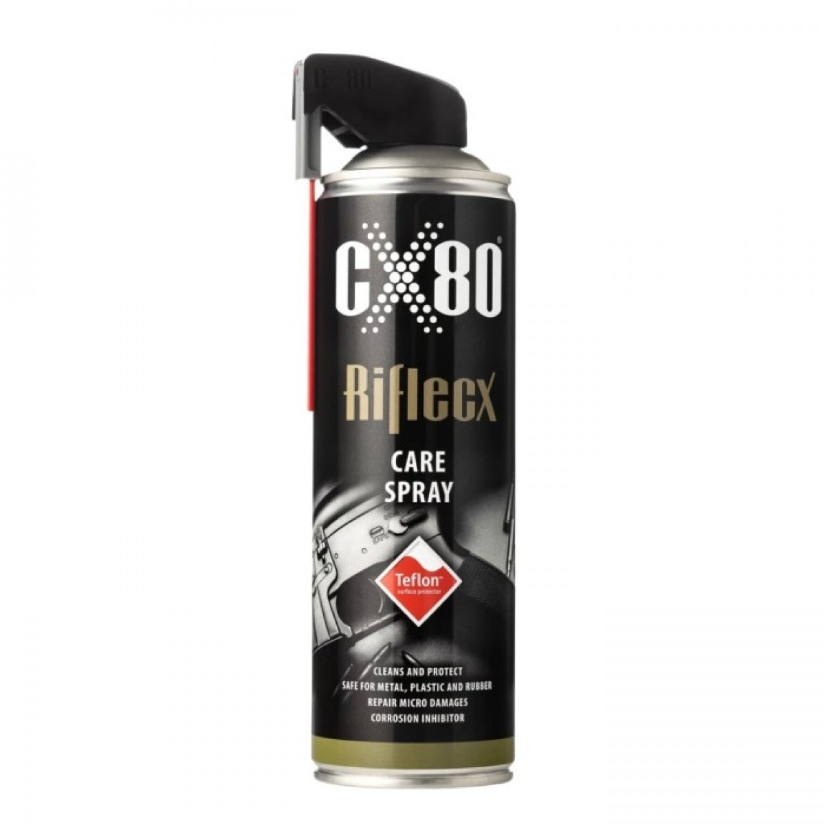 If you carry the gun with you, wipe it gently after using the CARE SPRAY with TEFLON from RifleCX. The protective coating will stay that way and your weapon will shine like straight from the store shelf. Original Teflon increases abrasion resistance, is resistant to acids and alkalis and protects your weapons from freezing.